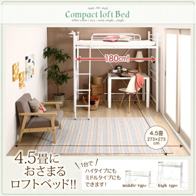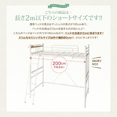 コンパクトロフトベッド 薄型軽量ボンネルコイル マットレス付き リネンセット セミシングル ショート丈