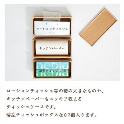 ローションティッシュ等の箱の大きなものや、キッチンペーパーもスッキリ収まるサイズです。