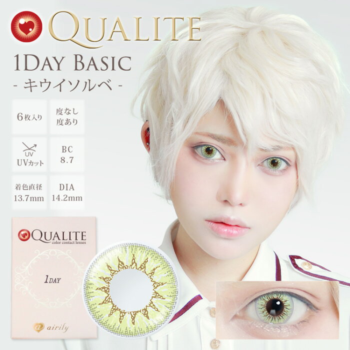 【ヘルシ価格 】カラコン カラーコンタクト QUALITE クオリテ UV キウイソルベ Q050 1day 1箱6枚 度あり 度なし